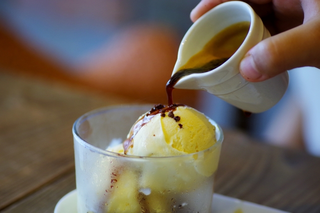 フレッシュミルクよりも濃縮された甘みとコクのあるコンデンスミルクに負けることなくパーフェクトにマッチするのです。