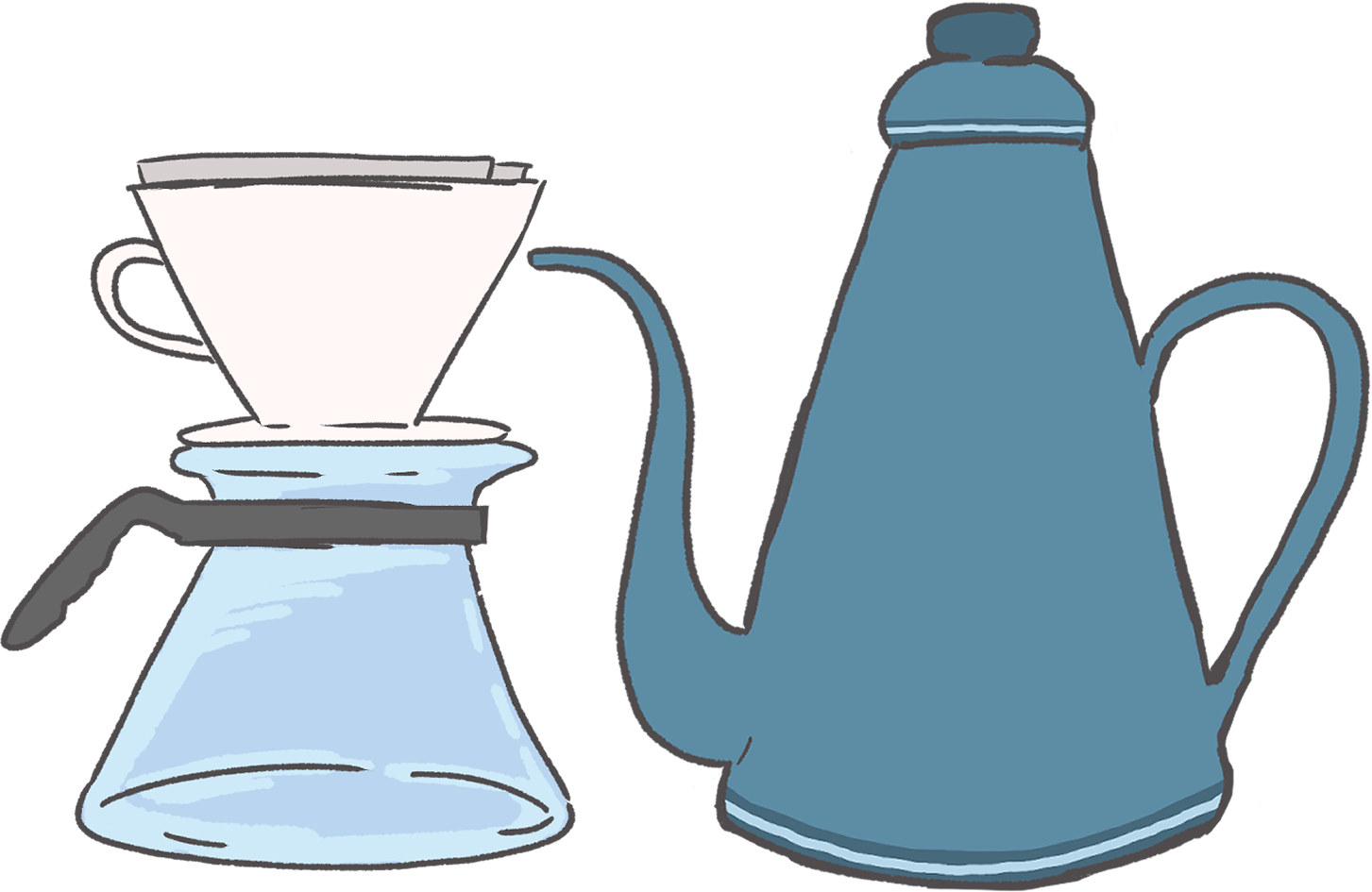 ドリッパーからカップへコーヒーが落ちるのを5分~7分待つ。